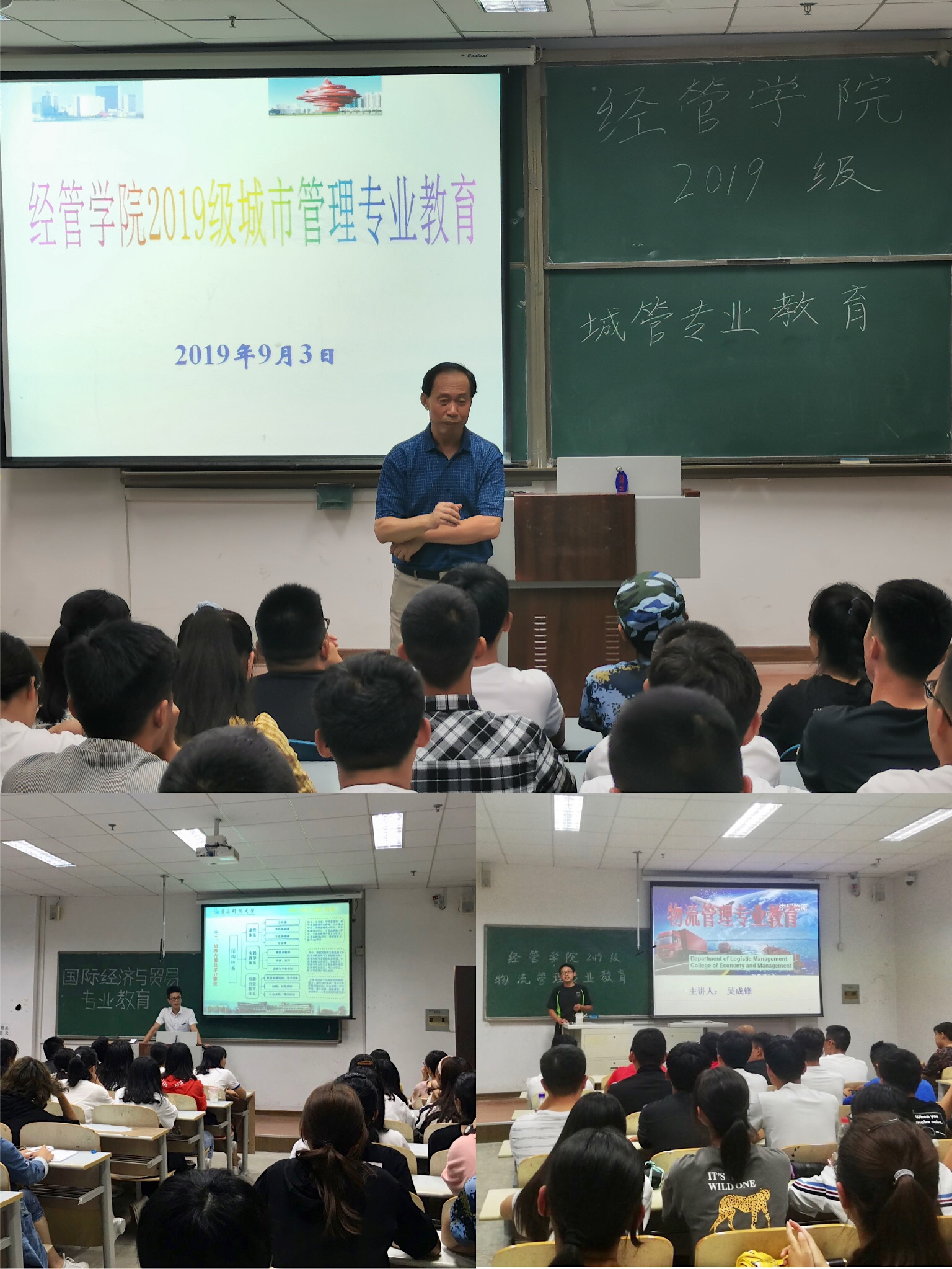 9月3日晚,tyc1286太阳成集团工商管理系、国际经济与贸易系、工业工程系、物流管理系、财务与会计学系、城市管理与区域经济系、市场营销与情报学系于明德楼开展2019级新生专业教育活动。各系主任、教师代表、2019级辅导员参加此次活动。