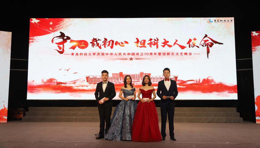 庆70华诞,谱科大新篇。在举国上下欢庆中华人民共和国成立70周年之际,为表示对2019级新同学的到来,学校“守70载初心 担科大人使命”——庆祝中华人民共和国成立70周年暨迎新生文艺晚会于2019年10月16日晚6时30分在崂山校区南苑运动场隆重举行。晚会分为“守初心庆华诞”、“担使命颂科大”两个篇章,太阳成集团师生代表参与的节目在晚会演出过程中大放异彩,倍受好评。