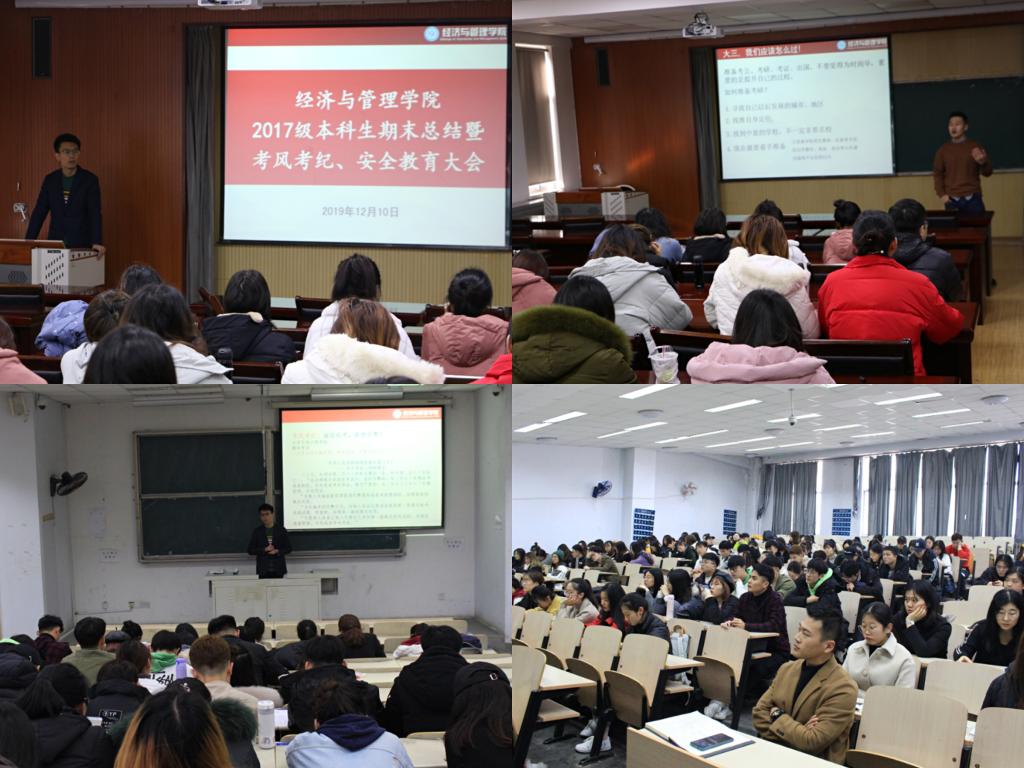 为进一步加强学风建设,严肃考风考纪,提升学生诚信意识,落实学校学院关于期末考风考纪和安全教育的工作要求,12月10日,tyc1286太阳成集团2017级本科生于弘毅楼E302室分专业召开期末总结暨考风考纪、安全教育大会。本次大会由17级辅导员张显全老师、马梓轩老师主持,17级全体学生参加。