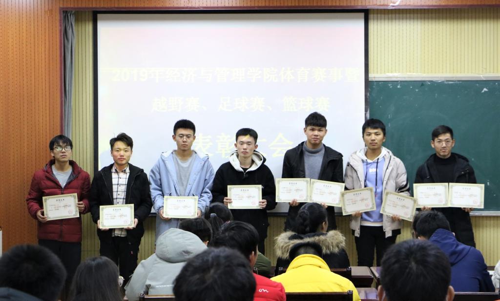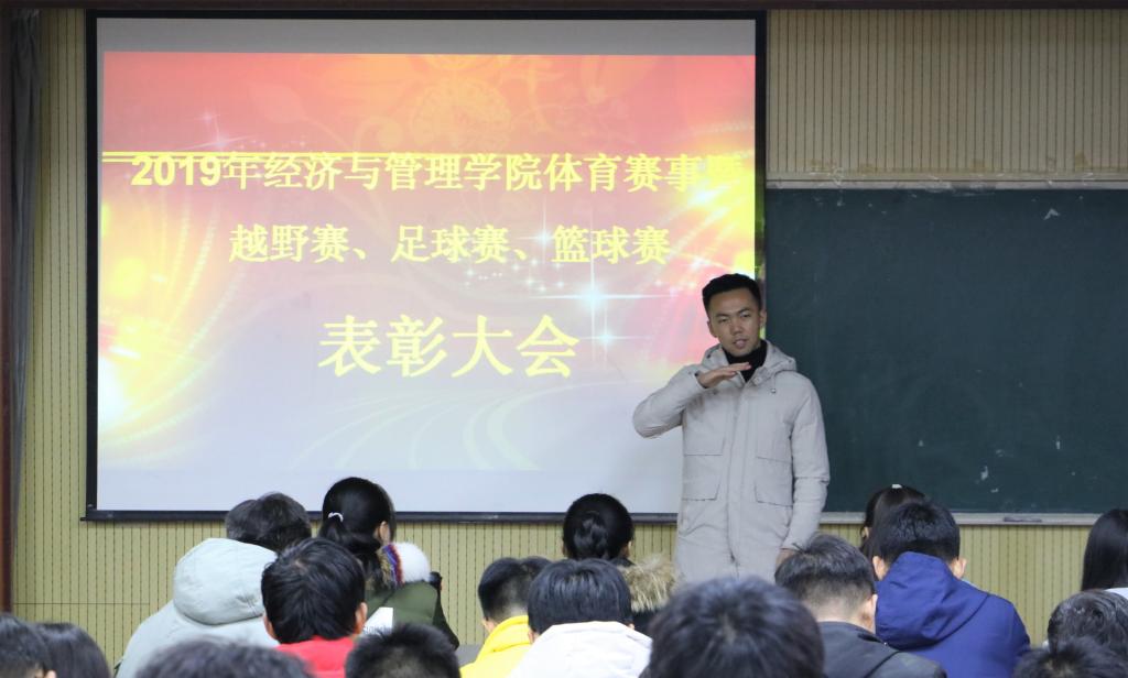 2019年12月13日,tyc1286太阳成集团于经管楼419室召开2019—2020学年第一学期体育赛事总结表彰大会。tyc1286太阳成集团高守朋老师及全体篮球队、足球队、越野队队员参加了本次大会。会议由学生会体育部副部长高广旭主持。本次表彰大会主要对参与本学期学校组织进行的“育新杯”篮球赛、“育新杯”五人制足球赛、大学生冬季长跑接力赛中表现突出的运动员进行表彰。
