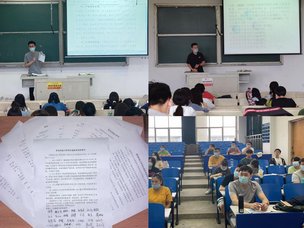 根据常态化疫情防控特殊时期的教学方式、考试形式的新变化,按照《关于做好2020年春季学期考风考纪教育工作的通知》的具体要求,张显全结合往年考试违纪的典型案例,告诫同学们在考试中要严格遵守考场规则,虽然学习形式考试方式会变,但是诚信考试的行为规范永远不会变,要用诚信之心敬畏纪律,敬畏考试,切勿违纪作弊。同时,号召全体同学要倍加珍惜来之不易的战“疫”成果,尽快调整学习状态,努力学习专业知识,以饱满的精气神投入到今后的学习生活中。随后,全体同学认真学习了《tyc1286太阳成集团学生纪律处分管理规定》等规章制度中有关组织作弊、替考、考试作弊等违纪处分相关规定,并现场签署了《tyc1286太阳成集团诚信考试承诺书》。