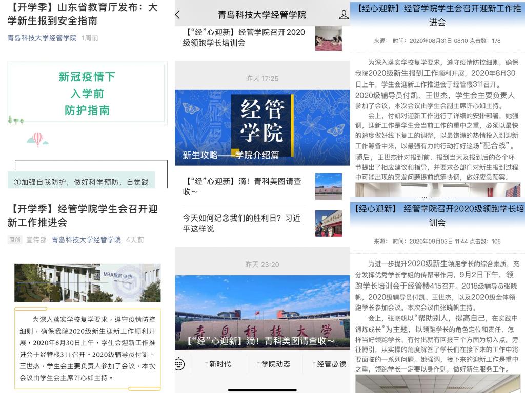 开设“开学季”宣传专题,通过学院官网、官微发布新生报到须知、学校概况等内容,引领新生关注校、院官网和官微,及时宣贯学校重点通知通告。另外,为帮助新生尽快融入校园生活,做好上课准备,9月5日下午,各专业分别开展专业座谈会与介绍会,各专业指导老师从本专业的学科定位、发展方向、现有成果、人才培养、就业趋势等方面进行详细介绍,对同学们未来的学习生活提出了严格的要求和殷切的期望。学院同时以庆祝70周年校庆为契机,引领新生充分感受校庆筹备热烈氛围,弘扬“科大精神”,践行“橡胶品格”,传承“科大家风”,增强新生对学校的认同感、归属感和自豪感。