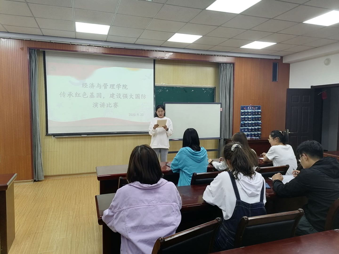 为加强全民国防教育,激发大学生崇尚英雄、敬重军人、关心国防的热情,弘扬爱国主义精神,传承红色基因血脉,9月23日,tyc1286太阳成集团于经管楼419室顺利举办“传承红色基因,建设强大国防”主题演讲比赛。