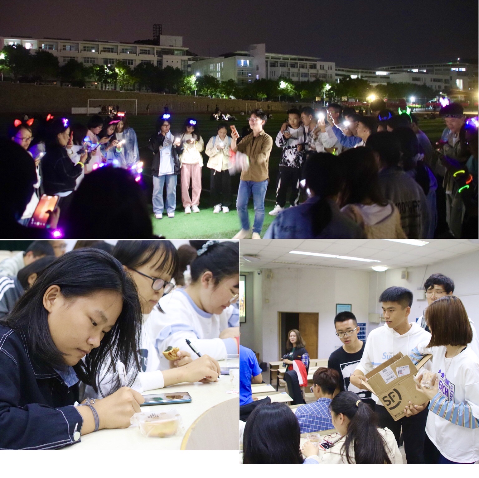 “时逢华诞玉轮圆,双喜临门不夜天。”为了更好的晚会体验,学院提前准备了十四种不同口味的青科限定月饼和明信片,同学们积极准备了展示的才艺与游戏的策划。晚会进行过程中,同学们踊跃表演节目,新生辅导员付凯与王世杰参观各专业的晚会现场并参与现场表演,为学生送上节日的祝福。一个个小小的月饼,洋溢着甜蜜的情感,一次次暖心的互动,共谱师生心连心的佳话。
