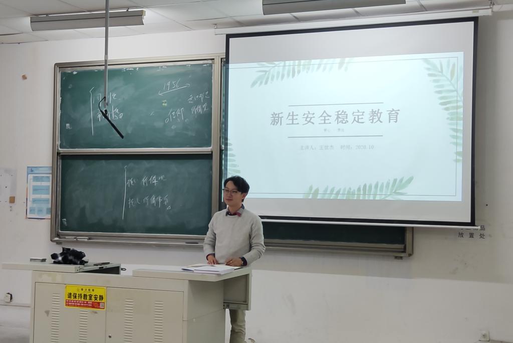 为深入贯彻学习教育部近期部署教育系统疫情防控和学校传染病防控工作的通知要求以及学校的安全稳定管理要求,提升学生安全防范意识和避险能力,全力保障学生在校安全。10月26日晚,tyc1286太阳成集团于弘毅楼E102室、E202室举行新生安全教育大会。会议由2020级辅导员付凯、王世杰主持,tyc1286太阳成集团全体新生参加会议。
