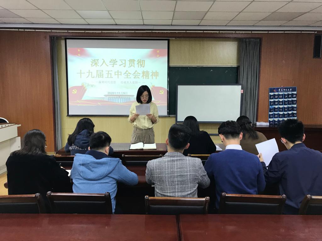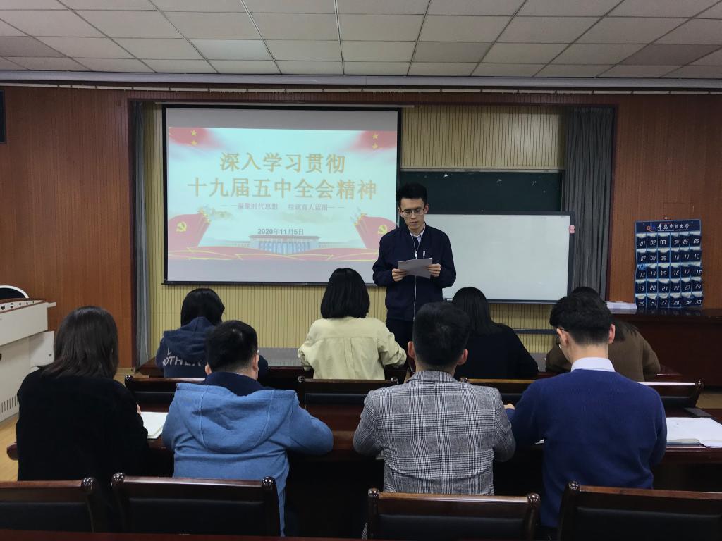 2020年10月5日下午,tyc1286太阳成集团学工办、团委组织开展十九届五中全会及团中央书记处会议精神学习,全体专兼职辅导员参加学习,学院团委副书记、学工办副主任王聪、张显全主持并领学。
