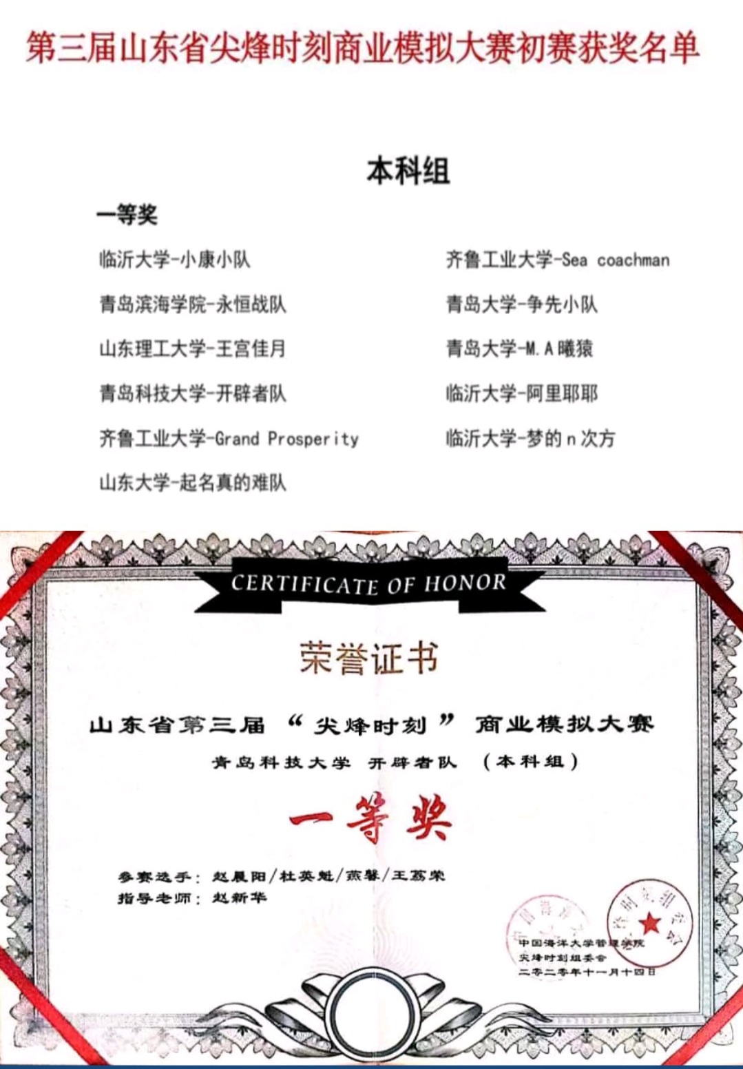 近日,山东省第三届“尖烽时刻”商业模拟大赛圆满结束,tyc1286太阳成集团tyc1286太阳成集团“开辟者队”在初赛中斩获本科组一等奖,成功晋级决赛,并取得优异成绩。