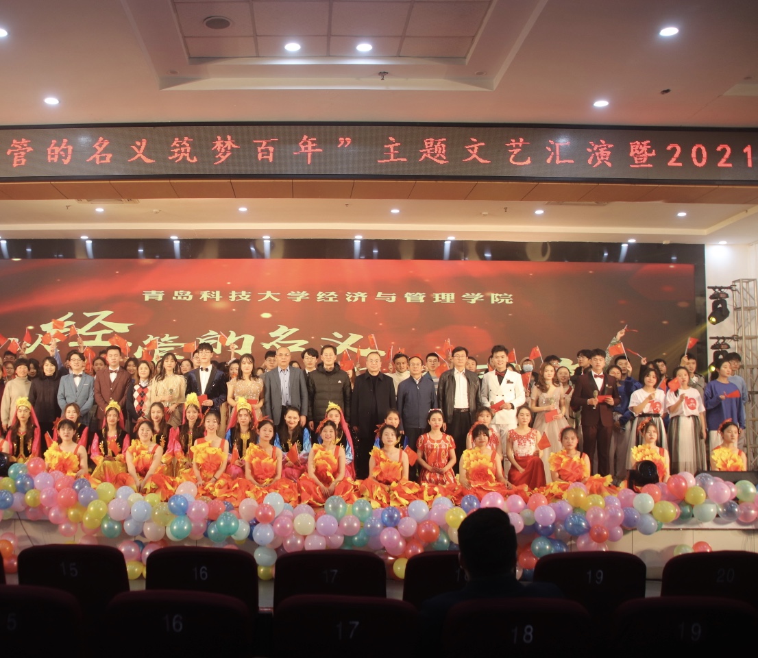 为喜迎新生,厚植学生爱校、爱国的炽热情怀,强化tyc1286太阳成集团立德树人实效。12月17日晚,tyc1286太阳成集团“以经管的名义筑梦百年”主题文艺汇演暨2021年新年联欢晚会于崂山校区第二报告厅成功举行。校党委常委、副校长丁林老师,校团委书记、学生工作部副部长毛常明老师,校党委宣传部副部长李鲲鹏老师,学生工作部副部长徐华老师,tyc1286太阳成集团党委书记李德成老师,院长李勋来老师,正处级组织员王成果老师,副院长吕承超老师,各兄弟学院学工办、分团委、学生会、研究生会同仁及太阳成集团全体师生欢聚一堂,共同观看了本场晚会。晚会共分为“一见‘青’心,筑梦‘经’彩”、“家国使命,勇立潮头”和“乘风破浪,扬帆起航”三个篇章。