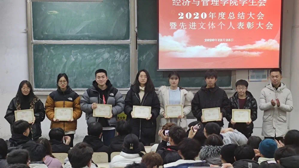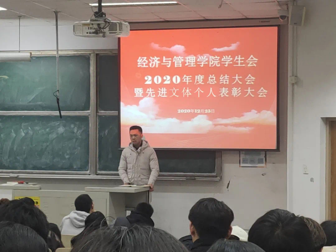 为推动学生会体制机制改革和创新发展,总结一年的发展成就与不足,提升学生会日常管理服务水平,12月25日,tyc1286太阳成集团学生会于弘毅楼E102室举行2020年度工作总结暨先进文体个人表彰大会。会议由学生会指导老师、18级辅导员高守朋主持,学生会全体成员及优秀文体活动获奖代表近150人参加了本次会议。