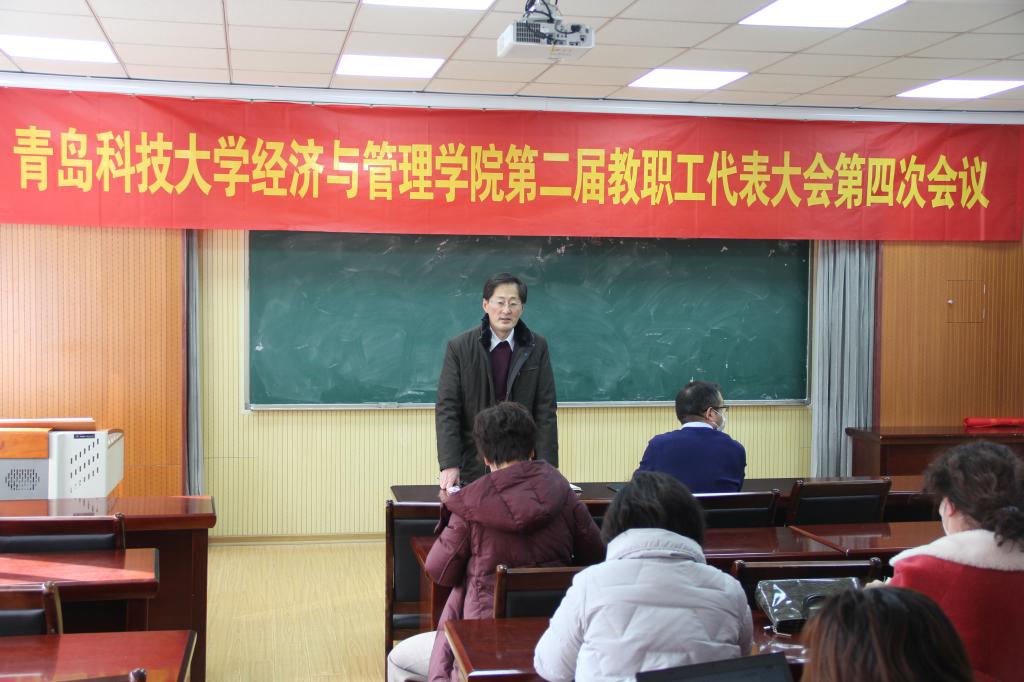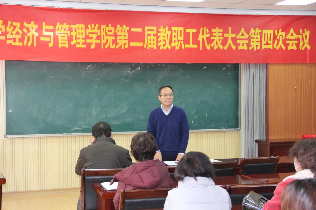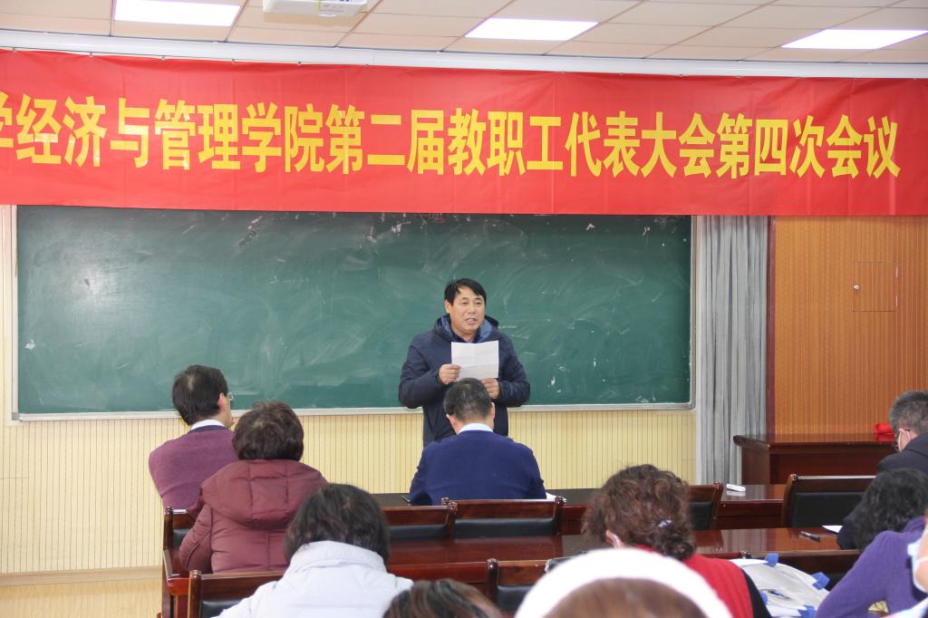 1月12日下午,tyc1286太阳成集团第二届教职工代表大会第四次会议于经管楼419会议室顺利召开,tyc1286太阳成集团全体教职工参加会议,学院党委书记李德成主持会议。