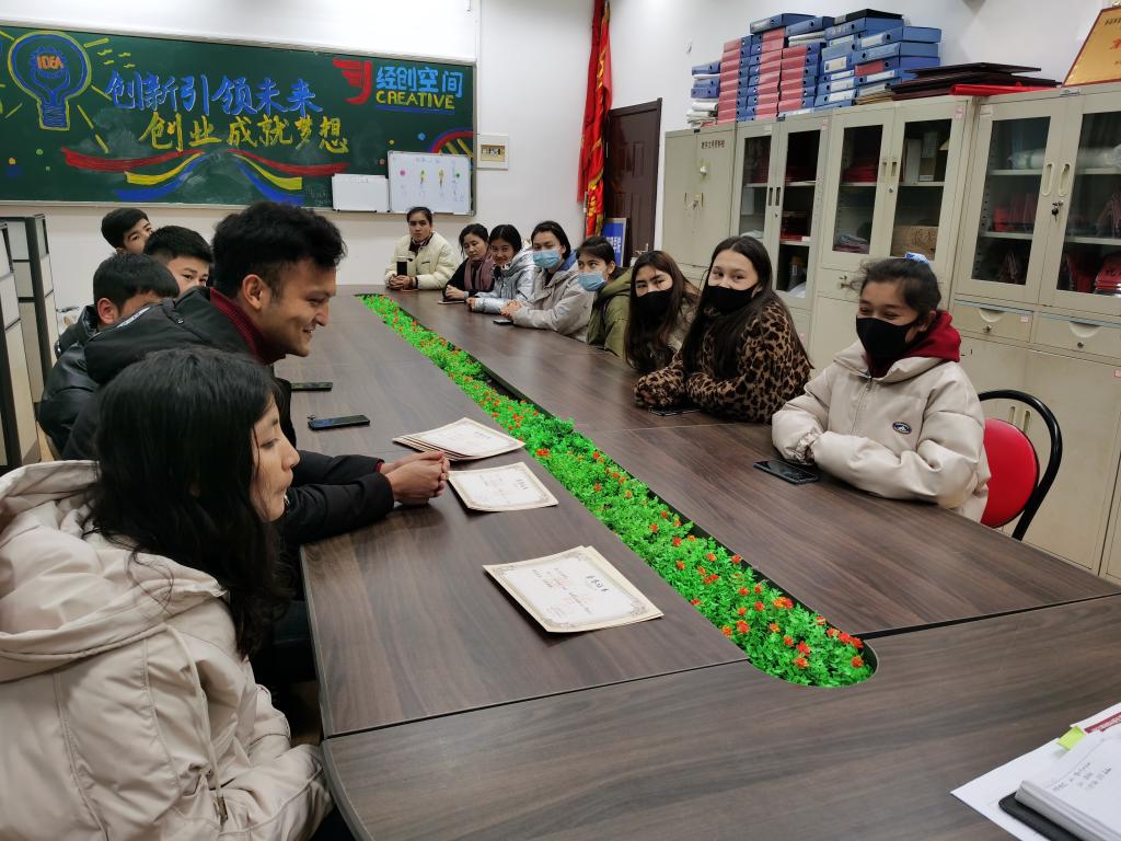 会上,同学们对学校学院老师们的关心表示感谢并逐一发言,就一学期以来自己在课程学习、日常生活、兴趣爱好、未来发展等方面的感悟畅所欲言,同时提出自己目前尚存的学习困难,并针对“短板”科目做出寒假学习规划。付凯和王世杰针对同学们提出的问题一一做出解答,帮助大家排忧解难,现场交流气氛温暖而融洽。国际经济与贸易专业的努斯热提·艾拜同学表示,这一学期自己加入大艺团,积极参与学校演讲比赛和晚会活动,充分发挥自己最喜爱的舞蹈特长,受益匪浅,接下来会和小伙伴们一起更加努力学习专业知识,练就过硬本领,争做新时代德才兼备的优秀大学生。