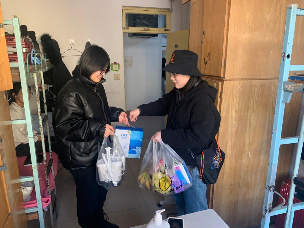 tyc1286太阳成集团于会后走访看望了因疫情留校学生,为学生送去学院的关怀与温暖,并补给了一些日常必需品和食物。鼓励学生在校安心学习,期盼家乡早日战胜疫情,学生可以平安返乡,同时,针对宿舍卫生、违规电器、违规物品及防火、防盗等细节排查安全隐患,嘱托学生每日按时上报健康信息,与辅导员、家长保持联系,有特殊情况及时和学校学院反馈。2020级工商管理专业的留校学生李雪对学校学院的关心和祝福深表感谢,她表示,宿舍的四个小姐妹分别来自不同学院、不同省份,大家互相作伴,感到非常亲切。一定会牢记老师们的嘱托,充分利用在校时间,合理规划自己的学习和生活,和老师、同学们在学校共同度过这段难忘而充满意义的时光。