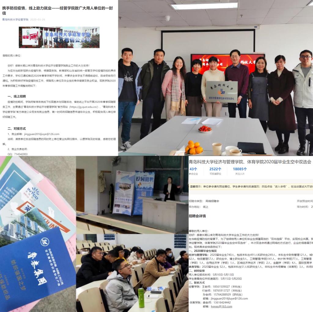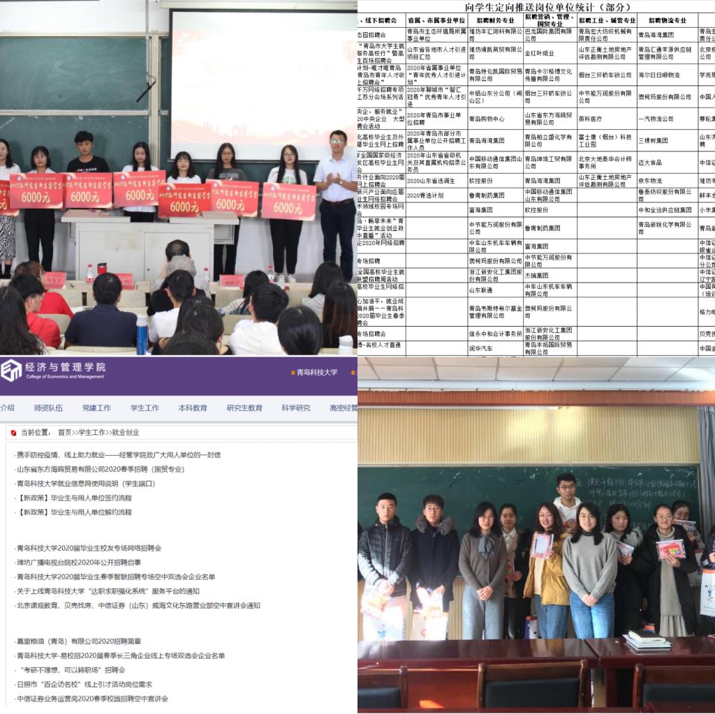 tyc1286太阳成集团主动对接用人单位,畅通信息渠道,确保人才供需“不掉线”。延伸市场“前端”,积极请进来,学工办(团委)集中举行“职在必得 筑梦未来”线下招聘会2场,从来自全国各地近200 家用人单位中优选出50家专业契合好、薪资水平高、发展前景广的优质企业,提供就业岗位1100余个。各系通过走访对口企业、组织学生实习、联系校友企业、签订实习基地等方式全力维护就业市场,七个专业先后邀请顺丰、青岛啤酒、TATA木门、东软集团等 40 余家针对性高、专业性强、行业知名的企业开展“小型化、专业化、特色化”招聘会14场。疫情期间发布《tyc1286太阳成集团致用人单位的一封信》,主动介绍防控期间线上招聘流程,联合人文社科七个学院举办“2020届毕业生空中双选会”,线上精准推送招聘企业212家,提供就业岗位650余个。深挖资源“后端”,积极走出去,充分发挥校友资源,密切联系合作企业、校友企业,开拓北上广就业市场,新增实习基地14家,开拓就业单位53家,提供就业岗位220余个,打通用人单位与毕业生间的“最后一公里”。畅通信息“终端”,构建“学院网站就业模块+微信公众号+QQ群+微信精准推送”信息发布平台矩阵,分地区给毕业生建群22个(山东351人,新疆18人,贵州16人,宁夏16人,云南12人,黑龙江10人,内蒙古10人 ....),累计为毕业生推送岗位2000余个,实时准确掌握就业进展,做到“日日清”“周周明”。