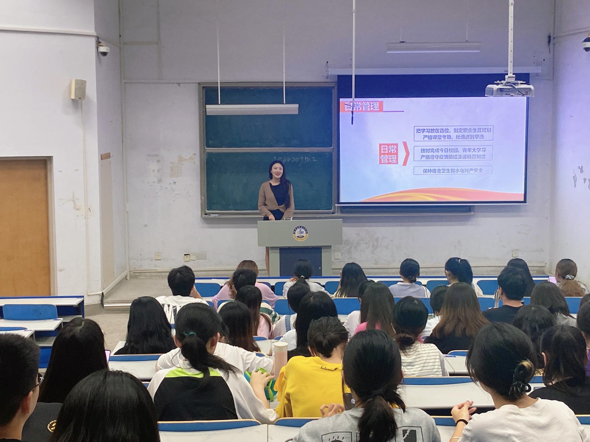 为引导2020级学生强化思想、规范品行、巩固学业、挖掘潜力,在新学期凝聚拼搏力量,以更加饱满的精神与奋进的姿态尽快适应大二的学习、生活节奏,9月8日晚,tyc1286太阳成集团2020级分专业召开“领跑新学期,做新时代的追梦人”开学第一课暨新学期教育大会。会议由2020级辅导员付凯、王安琪主持,2020级全体学生参加了此次会议。