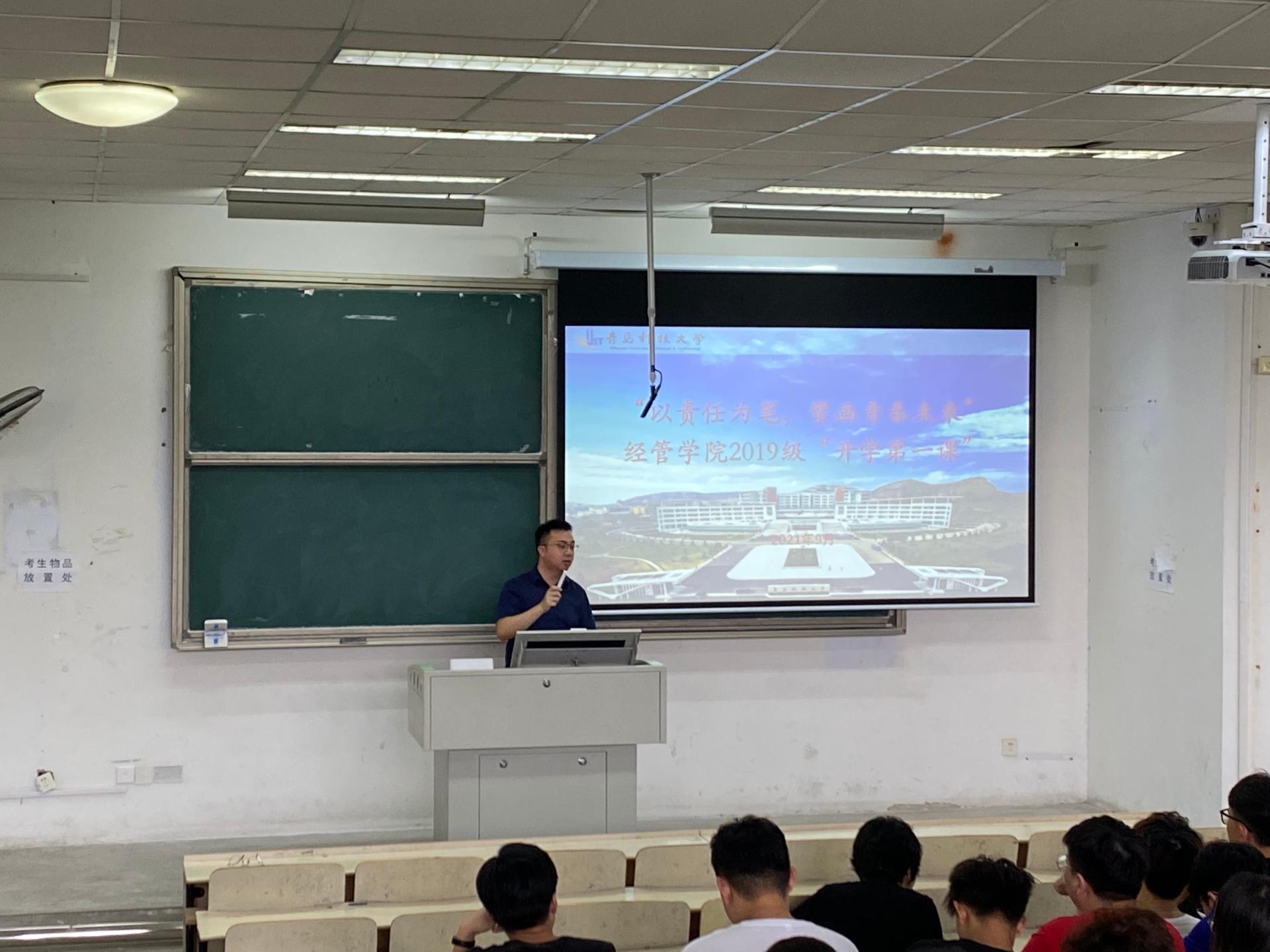 为推动新学期工作有序开展,帮助学生尽快回归校园生活、恢复学习状态,近日,tyc1286太阳成集团2019级分专业召开“以责任为笔,擘画青春未来”开学第一课,从“学习党史悟思想”、“常态防疫不松懈”、“学风纪律放心上”及“考研就业早规划”四个方面对返校学生进行了全方位开学教育与价值引领。会议由2019级辅导员孙一君、赵杰主讲,2019级全体学生参加。