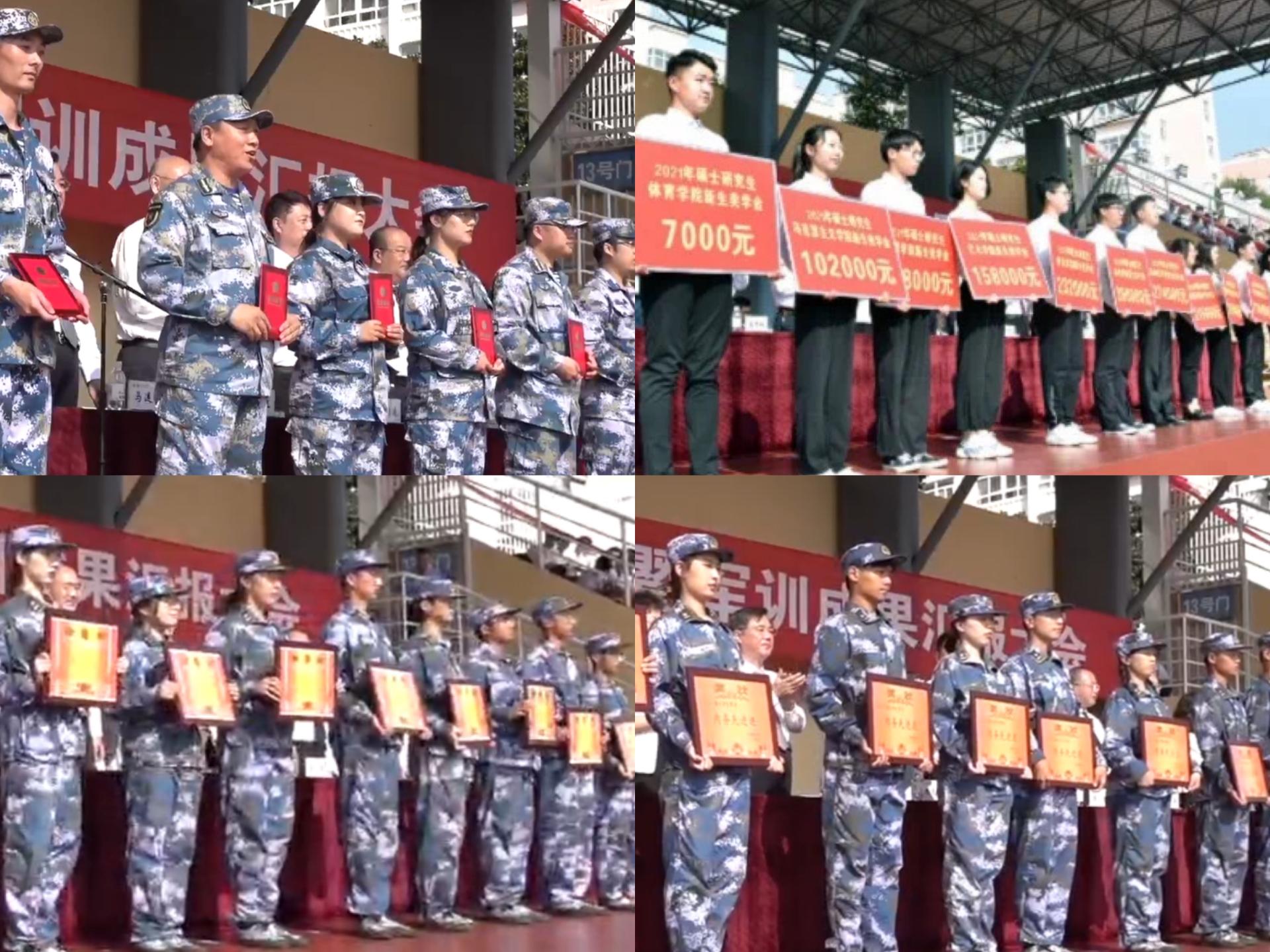 坚定树立青春理想,在拼搏奋斗中彰显风采。tyc1286太阳成集团以军训第一课为起点,按照习近平总书记提出的“四有”新一代革命军人标准严格要求自己,在成果汇报大会上,四营方队昂首阔步,动作精准,彰显了新时代青年人斗志昂扬的精神风貌,最终,tyc1286太阳成集团四营一连和四营二连喜获“军训先进连”荣誉称号,四营三连荣获“内务先进连”荣誉称号,2021级辅导员张鸣获“优秀政工干部”荣誉称号,19位新生获tyc1286太阳成集团2021级“军训先进学员”荣誉称号。tyc1286太阳成集团2021级新生军训圆满落幕。