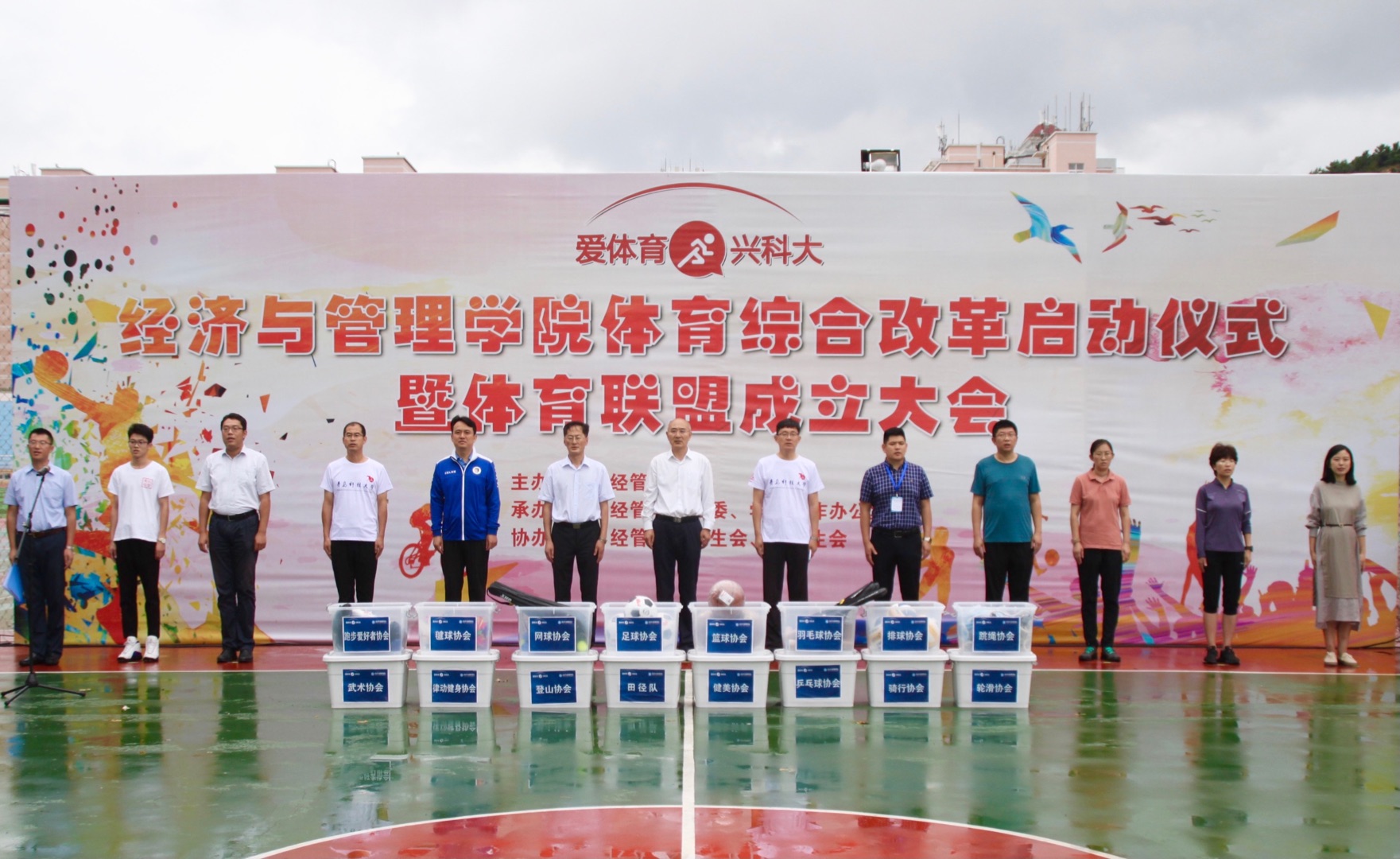 大会在庄严雄壮的国歌声中拉开帷幕。会上公布了《tyc1286太阳成集团体育综合改革实施方案》,宣读了《关于tyc1286太阳成集团成立体育联盟的批复》和《tyc1286太阳成集团体育综合改革倡议书》。与会各领导老师为tyc1286太阳成集团17个体育协会授旗。跳绳协会、排球协会、武术协会、篮球协会、律动健身协会、足球协会等8个协会依次带来了精心准备的风采展示,全体成员青春飞扬、健康向上、技术娴熟,展现出青科大人的“体育范儿”。
