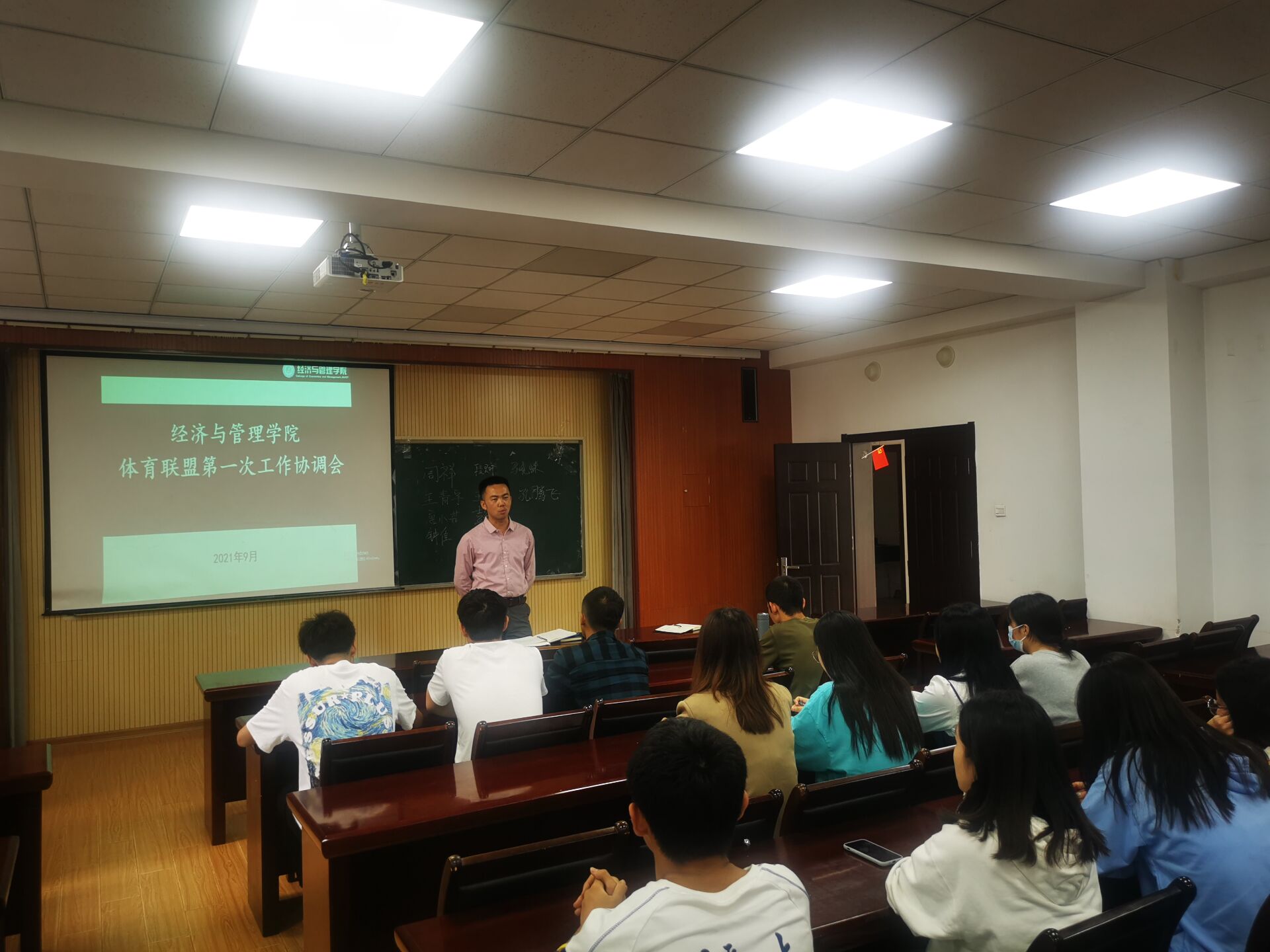 9月28日下午,tyc1286太阳成集团体育联盟第一次工作协调会议在经管楼419会议室召开,联盟指导老师高守朋,学生会体育部全体成员、各协会负责人参与会议。