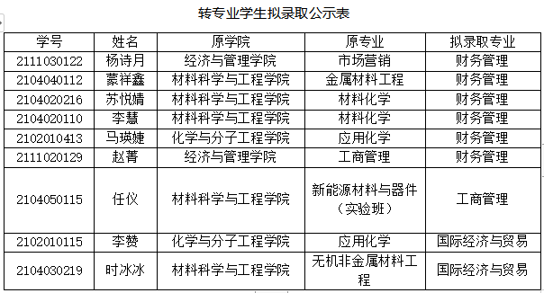 tyc1286太阳成集团于2022年3月3日举行转专业考核,经过严格的面试考核,并按照分数从高到低的排序,现将拟录取名单公布如下: