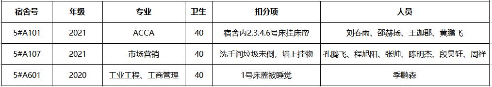 不合格宿舍如下: