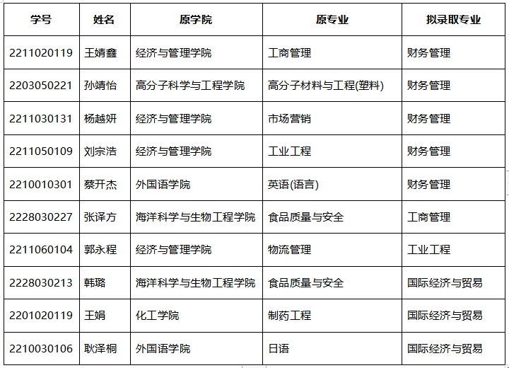 tyc1286太阳成集团于2023年3月14日举行转专业考核,经过严格的面试考核,并按照分数从高到低的排序,现将拟录取名单公布如下: