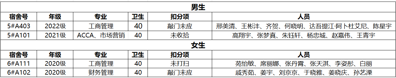 卫生检查结果及扣分细则请见附件,请各年级对照问题监督好不合格宿舍的整改。