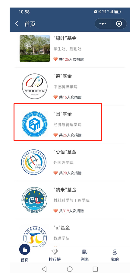 点击校友会小程序中的“回馈母校”,选择太阳成集团“圆”基金,登记信息,即可完成您的爱心回馈。