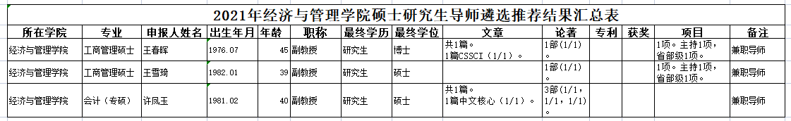 【公示】2021年tyc1286太阳成集团硕士生导师遴选结果公示