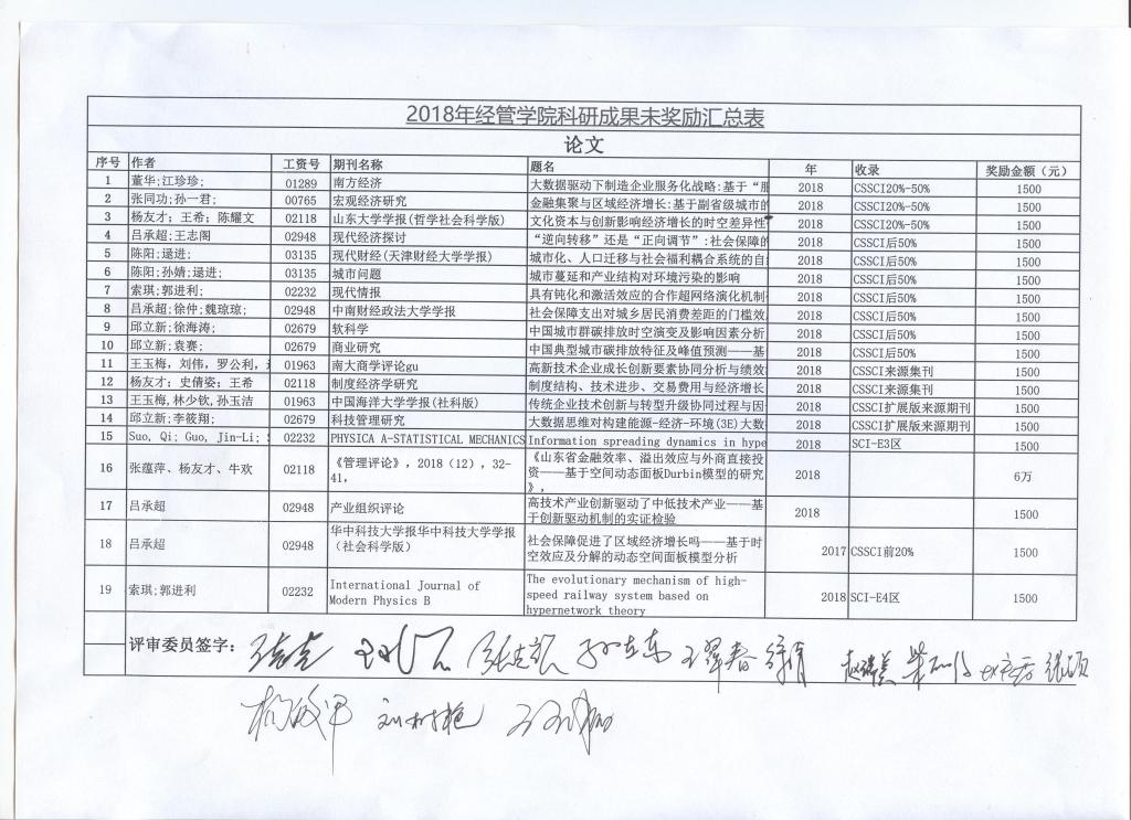 经过学术委员会审核,tyc1286太阳成集团2018年度科研奖励公示如下图: