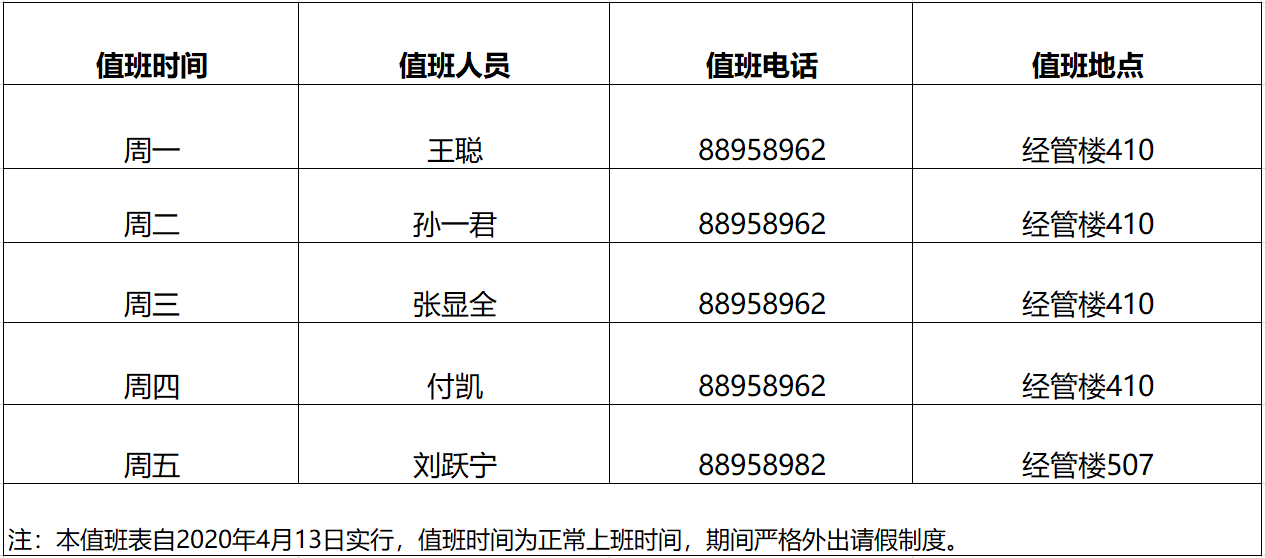 tyc1286太阳成集团学工办(分团委)2020年春季值班安排