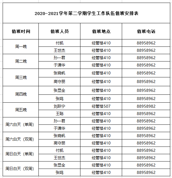 tyc1286太阳成集团学工办(团委)常态化值班安排表