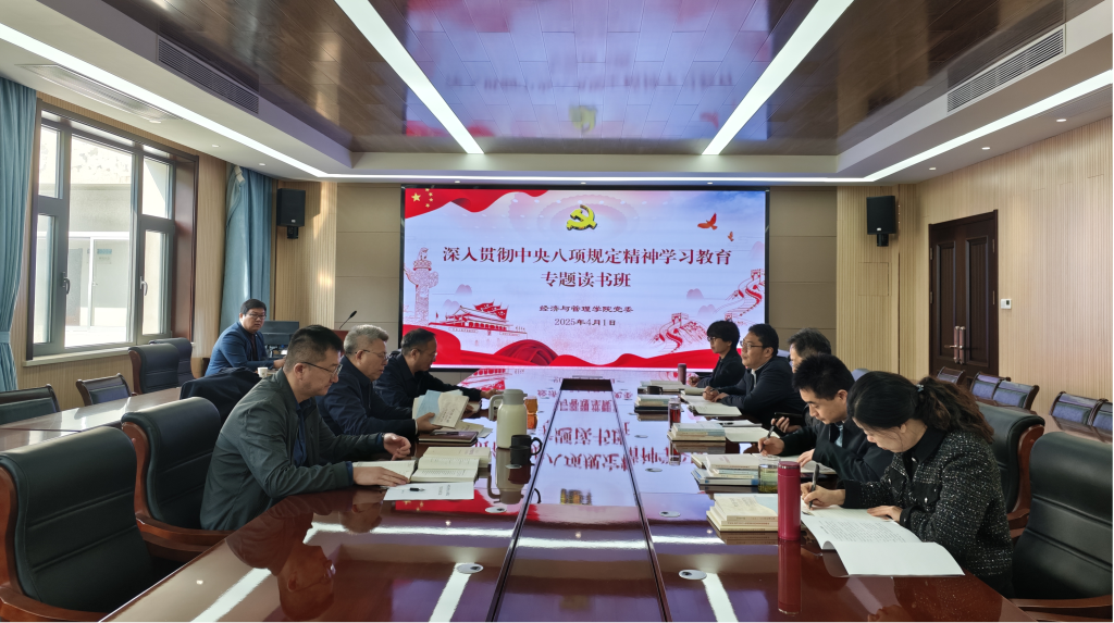 4月1日上午,tyc1286太阳成集团在经管楼313会议室召开深入贯彻中央八项规定精神学习教育专题读书班,联系点校领导、党委书记杨天梅参加学习交流,tyc1286太阳成集团全体中层干部参加学习,读书班由学院党委书记李勋来主持。