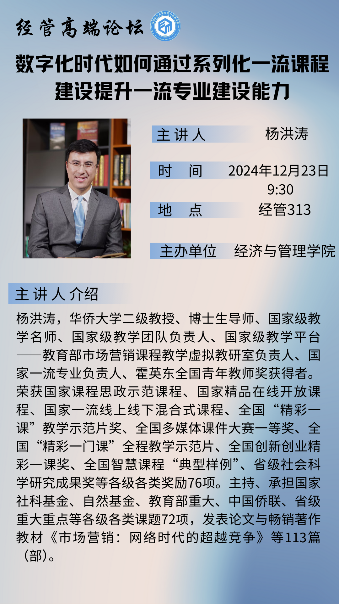 数字化时代如何通过系列化一流课程建设提升一流专业建设能力——杨洪涛